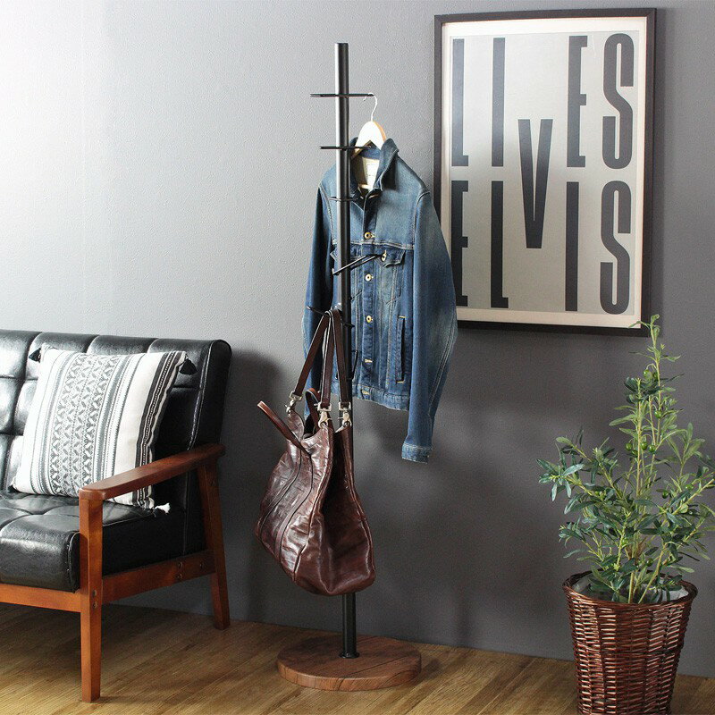 ポールハンガー 洋服掛け おしゃれ ナチュラルモダン スタイリッシュ オブジェ 玄関収納 ハンガー ラック 棚 木製 レトロ
