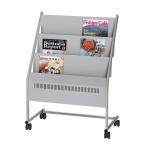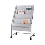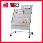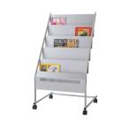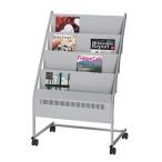 マガジンスタンド KNM-340 スチール製 4段 マガジンラック ブックラック ディスプレイ シルバー キャスター付 待合室 雑誌収納 図書館 本屋