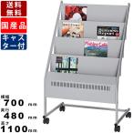 マガジンスタンド KNM-340 スチール製 4段 ブックラック ディスプレイ ディスプレー 雑誌収納 カタログスタンド パンフレット マガジンラック ストッパー付キャスター 待合室 図書館 本屋 雑誌棚 コレクション 傾斜付 幅700mm 日本製 弘益