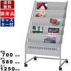 【法人送料無料】 【業務用】 マガジンスタンド 4段 傾斜型 キャスター付き パンフレットスタンド 本棚 雑誌置き 幅70cm 奥行48cm 高さ110cm シルバー UT-1362