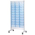 【法人送料無料】 【日本製/業務用】 パンフレットスタンド 直立型 マガジンスタンド ラック 3列10段 収納カセット30個 A4サイズ クリアブルー キャスター付 UT-0957
