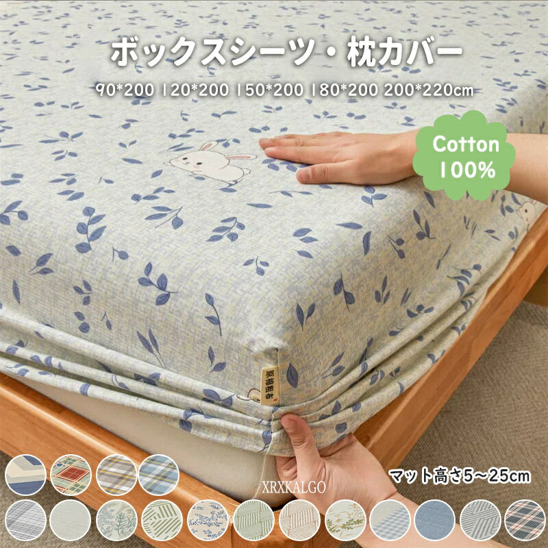 「期間限定 全品8%OFFクーポン」ボックスシーツ 枕カバー 掛け布団カバー コットン100% 高さ5~25cm以内 5面 120x200 150x200 180x200 200x220 ベッドシーツ マットレスカバー シート 高品質 柔らかい 肌に優しい 布団シーツ 春 夏 秋 全綿 うさぎ柄 チェック 無地 花