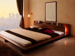 フロアベッド ローベッド ダブル [マルチラススーパースプリングマットレス付き ダブル モダンライト・コンセント付き大型ローベッド] 送料無料