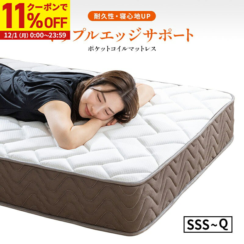 【11%OFFクーポン配布中★12/1に使える】 マットレス 高反発 ポケットコイル セミシングルショート セミシングル シングル セミダブル ダブル クイーン 硬め スプリングマット エッジサポート 高密度 へたり防止3Dメッシュ 通気性 圧縮ロール 厚さ20cm