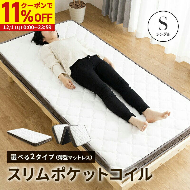 5%offクーポン 29日から◆薄型 ポケットコイルマットレス シングル サイズ マットレス マット 単品 ホワイト 白 通気性 一人用 一人暮らし ベッド用 二段ベッド 2段ベッド ロフトベッド ベッド 薄い 両面 キルティング 圧縮 コンパクト 体圧分散 9cm COZY