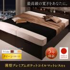 (タイムセール中) 連結ベッド クイーン(SS×2) マットレス付き 薄型プレミアムポケットコイル 縦開き