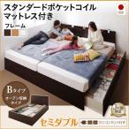 (タイムセール中) セミダブルベッド 連結ベッド マットレス付き スタンダードポケットコイル Bタイプ セミダブル