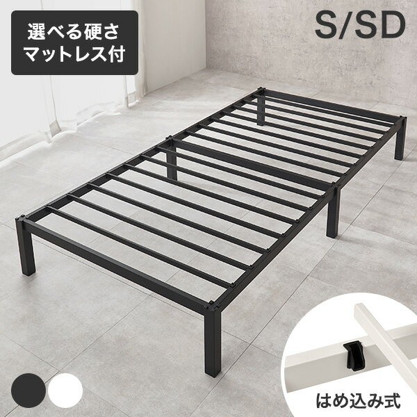 【5%OFFクーポンあり★3/1限定】ネジ不要 パイプベッド S/SD(ベッド シングル マットレス付き マットレス付き ベット マットレス 付き セミダブル 新生活 ベッドセット パイプベッド ベッドフレーム パイプ マットレスセット ホワイト ブラック 白 黒)
