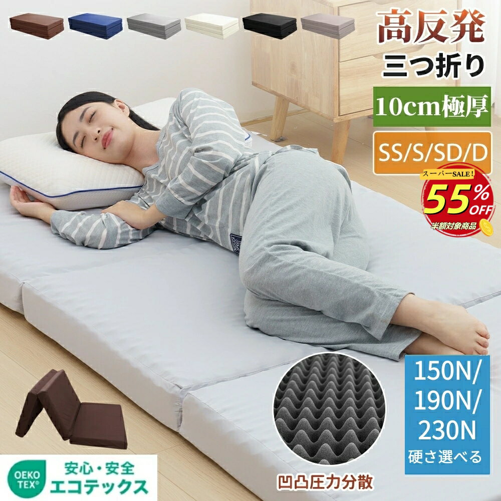 【本日限定クーポンで11%OFF】マットレストッパー シングル シングル セミダブル ダブル マットレス 高反発 トッパー 4cm 敷布団 敷き布団 三つ折り 高反発マットレス 折りたたみ 3つ折り ベッドマットレス 高反発マット ベッドマット 硬め 寝具 布団 マット 送料無料