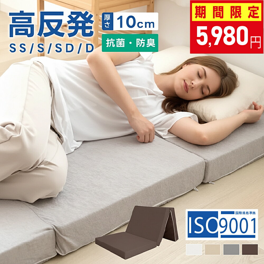 マットレス セミダブル 三つ折り 高反発マットレス 腰痛 折りたたみ ベッドマットレス 極厚10cm マットレストッパー セミダブルマットレス 3つ折り