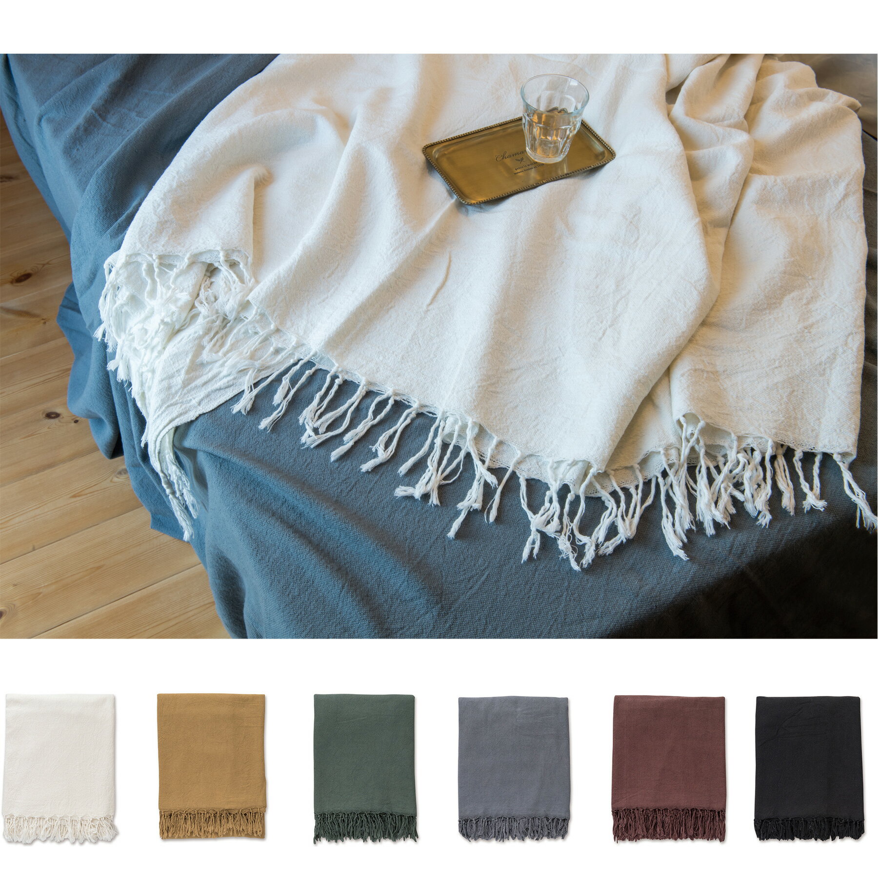 【10%OFF】マルチカバー ベッドカバー ソファーカバー テーブルクロス ブランケット 長方形 250×200cm フリンジ コットン100% 無地 大判 ファブリック 北欧 インテリア カフェ リビング 目隠し