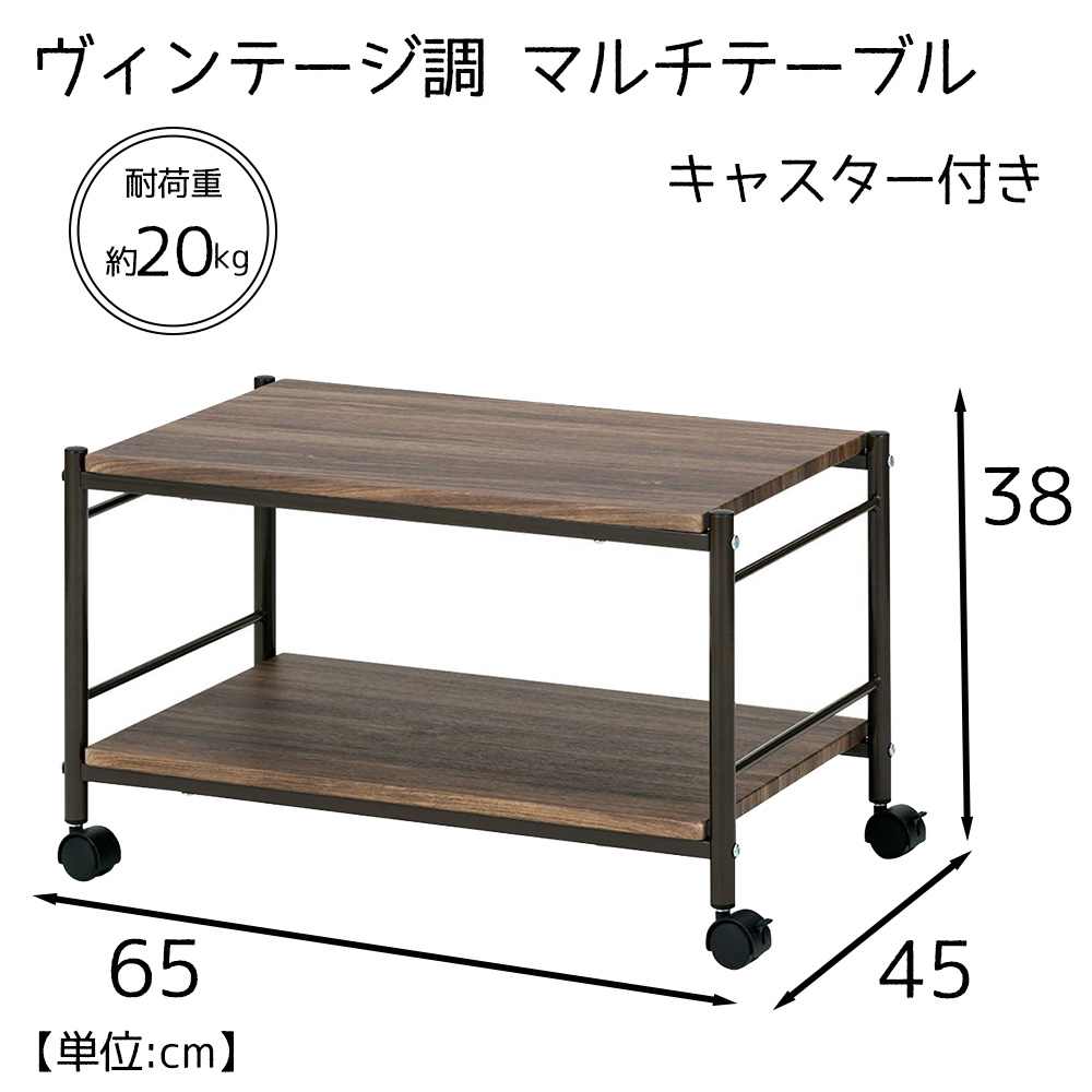 武田コーポレーション ヴィンテージ調 キャスター付き マルチテーブル ブラウン 幅65×奥行45×高さ38cm [座卓 机 ローテーブル] T8-VCMT65BR [お客様組立品]
