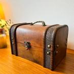 アンティーク調ウッドBOX(ボストン型)♪ 宝箱 収納雑貨 小物入れ おもちゃ箱 レトロ 中世ヨーロッパ ファンタジー 異世界風 インテリア