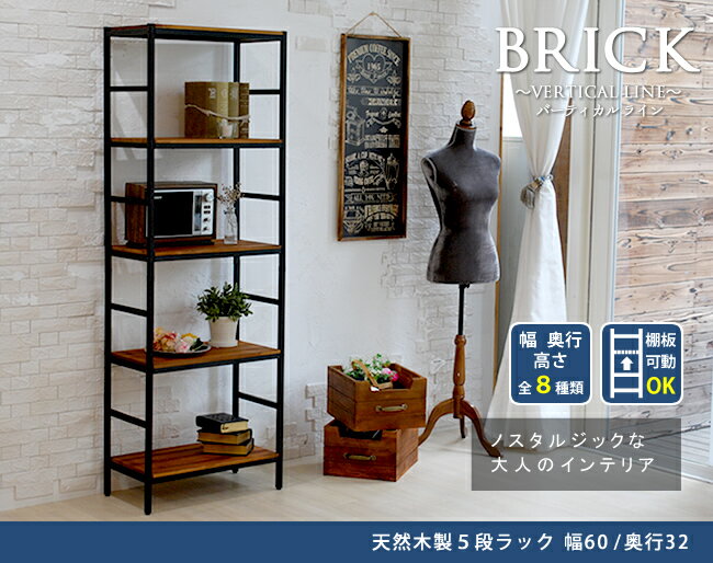 【30日★50枚★5%OFFクーポン】 天然木×アイアン 木製ラック 5段 60×32×175 シェルフ 棚 オープンラック おしゃれ メタルラック 幅60 奥行30 レトロ ヴィンテージ 頑丈 アンティーク