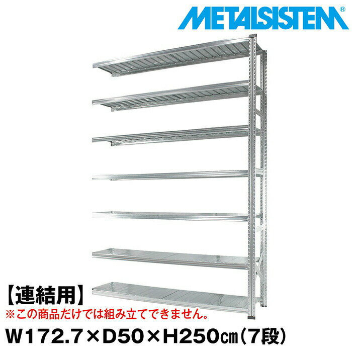 メタルシステム セミ(連結用)幅172.7x高さ250.0x奥行50.0(cm) 7段 【METALSISTEM スチールラック 棚 ラック 収納棚 メタルラック おしゃれ 組立簡単 スチール棚 業務用 陳列棚 オフィス家具 メタルシェルフ 店舗什器】