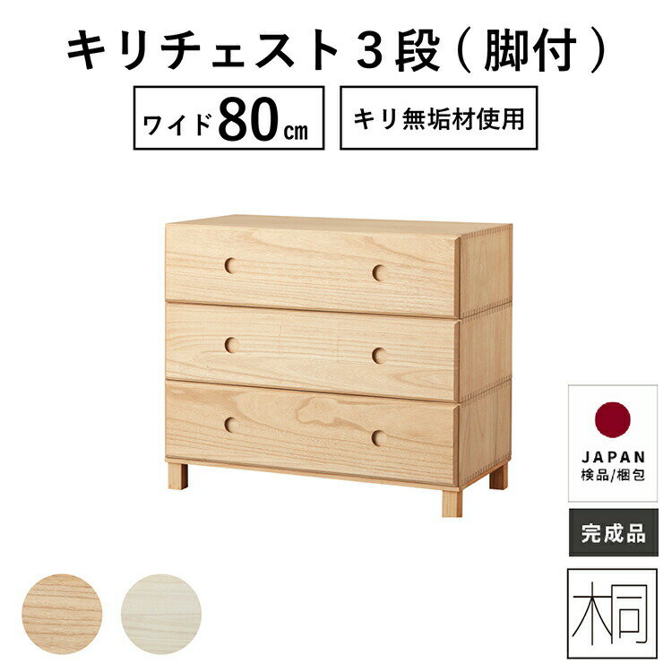 【10%OFFクーポン!16(金)1:59迄】 キリチェスト ローチェスト 80幅 3段 完成品 収納棚 おしゃれ クローゼット 押入れ ナイトテーブル サイドテーブル 木製 桐 簡単組立 新生活 衣装ケース オモチャ箱 ユニット家具 引き出し タンス 送料無料