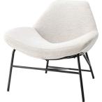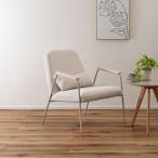 クッション付きラウンジチェア 一人掛けチェア アイボリー スチール製 ファブリック 布張り 肘置き付き ゆったり