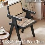 ラタンチェア 籐編み ラウンジチェア 北欧 組み立て ジャンヌレ Vレッグ オフィスチェア 一人掛け リビングチェア 椅子 PH28BK