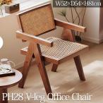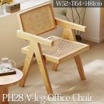 ラタンチェア 籐編み ラウンジチェア 北欧 ジャンヌレ Vレッグ オフィスチェア 一人掛け リビングチェア 椅子 ローチェア PH28NR