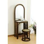 籐 鏡台 椅子付き ドレッサー&スツールセット ダークブラウン ラタン W-1003Bset