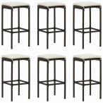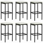 vidaXL バースツール 6点 クッション付き ポリラタン製 ブラック 家具 チェア テーブル・バースツール