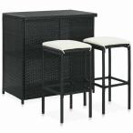vidaXL バーセット 3点 ポリラタン製 ブラック 家具 家具セット キッチン・ダイニング 家具 Sets