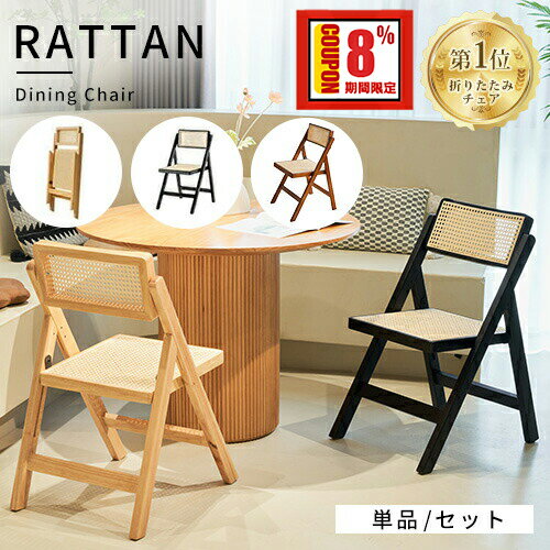 8%OFF+P2倍 27日迄【レビュー特典・3年保証】ダイニングチェア 折りたたみ式 ラタンチェア 完成品 木製 籐 折りたたみチェア ナチュラル 省スペース ラタンイス 無垢材 ブラック 黒 リビング 通気性 オシャレ 韓国風 コンパクト 北欧風 来客対応 職場 送料無料
