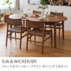 ダイニング 5点セット folk&WICKER/BR ダイニングセット テーブル 円形 楕円形 170 チェア ラタン 木製 チーク オーク 無垢 伸長式 ナチュラル