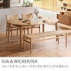ダイニング 4点セット folk&WICKER/NA ダイニングセット テーブル 円形 楕円形 170 チェア ベンチ ラタン チーク オーク 無垢 伸長式 ナチュラル