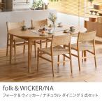 ダイニング 5点セット folk&WICKER/NA ダイニングセット テーブル 円形 楕円形 170 チェア ラタン 木製 チーク オーク 無垢 伸長式 ナチュラル