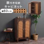 ラタン調 キャビネット 幅60cm チェスト マルチラック 3段 扉付き 2枚 取っ手付き 本棚 整理棚 収納棚 飾り棚 リビング収納 ディスプレイラック