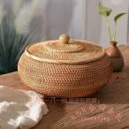 ラタンバスケット ラタンかご 籐かご 蓋付き 丸型 チェスト お菓子収納 茶の葉入り 小物入れ フルーツバスケット 手織りラタントレイ
