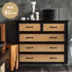 キャビネット チェスト サイド ラタン 籐 木目 ウッド 収納 通気性 ディスプレイ 幅80 たんす 箪笥 引出 洋服収納 衣類 木製