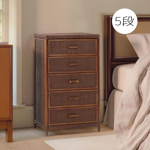 ラタン チェスト 籐家具 5段 ハイタイプ 収納 引き出し 小物 ベッドサイド おしゃれ モダン アジアン リビング リゾート風 南国風【5段チェスト (06-0927-00)】