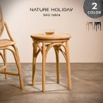 サイドテーブル ラタン ラウンドテーブル ナイトテーブル チーク 北欧 円形 軽量 カゴメ編み ナチュラル ブラック 業務用 ホテル NATURE HOLIDAY HT040 爆買