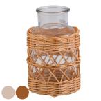 花瓶 ラタンガラスボトル Lサイズ ガラス ( 花びん 花器 ベース ガラス製 丸型 籐 狭口 ボトル )