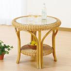 ラタンテーブル 円形 ガラス天板 棚付 籐家具 直径60cm ( アジアン )