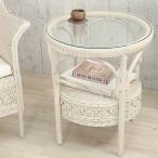 ラタン テーブル ガラステーブル サイドテーブル 丸型 円形 収納 おしゃれ ソファサイド 籐 ホワイト 白 北欧 姫家具 カントリー 完成品 新生活 一人暮らし