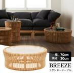 センターテーブル 幅70cm ラタンテーブル ローテーブル 丸テーブル 円形 籐 ラタン ガラス ナチュラル 天然素材 アジアン リゾート風 おしゃれ
