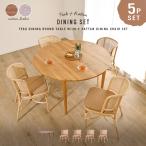ダイニング 5点セット folk&WICKER/NA ダイニングセット テーブル 円形 楕円形 170 チェア ラタン 木製 チーク オーク 無垢 伸長式 ナチュラル
