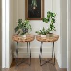 【並行輸入品】Oakrain ラタンサイドテーブル ネスティングテーブル 2個セット 竹製ラウンドテーブル コーヒーテーブル メタルベース エン