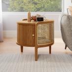 【並行輸入品】POVISON ラタンサイドテーブル、ローラードア&織ラタン付きテーブル 19.75インチ ラウンドエンドテーブル 収納付き ナイ