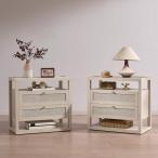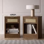 【並行輸入品】VividVibe ナイトスタンドセット2、引き出しと収納棚付きナイトスタンド ラタン ボーホー ベッドサイドテーブル 大型ナ