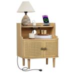 【並行輸入品】Woiuera ラタン ナイトスタンド 2個セット Type C充電ステーション付き ファームハウス ベッドサイドテーブル ラタン