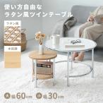 ローテーブル ラタン風ツインテーブル スチール脚 アジャスター付 入れ子式 リビングテーブル カフェテーブル ナチュラル 韓国 北欧 家具 リビング ラタン 籐