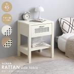 サイドテーブル ラタン調 かごめ編み おしゃれ 北欧 ナイトテーブル 幅45cm 韓国インテリア 引出し 収納 ベッドサイド 寝室 ソファ コンパクト NONIER NO45-60T