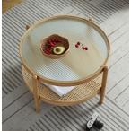 センターテーブル 幅70cm ラタンテーブル ローテーブル 丸テーブル 円形 籐 ラタン ガラス ナチュラル 天然素材 アジアン リゾート風 おしゃれ