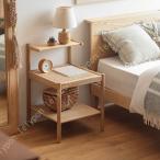 ナイトテーブル ブラウン 北欧 オーク 無垢材 木製 ラタン おしゃれ テーブル サイドテーブル ベッドサイド ラック シェルフ 収納 シンプル ナチュラル