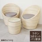 籐 回転座椅子・ソファ・テーブル リビング 4点セット ( ラタン家具 リビングテーブルセット チェア ソファ 完成品 )