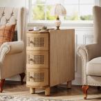 【並行輸入品】VINGLI ナイトスタンド 充電ステーション付き ラタンナイトスタンド 3段引き出しベッドサイドテーブル ボーホーエンドテーブル